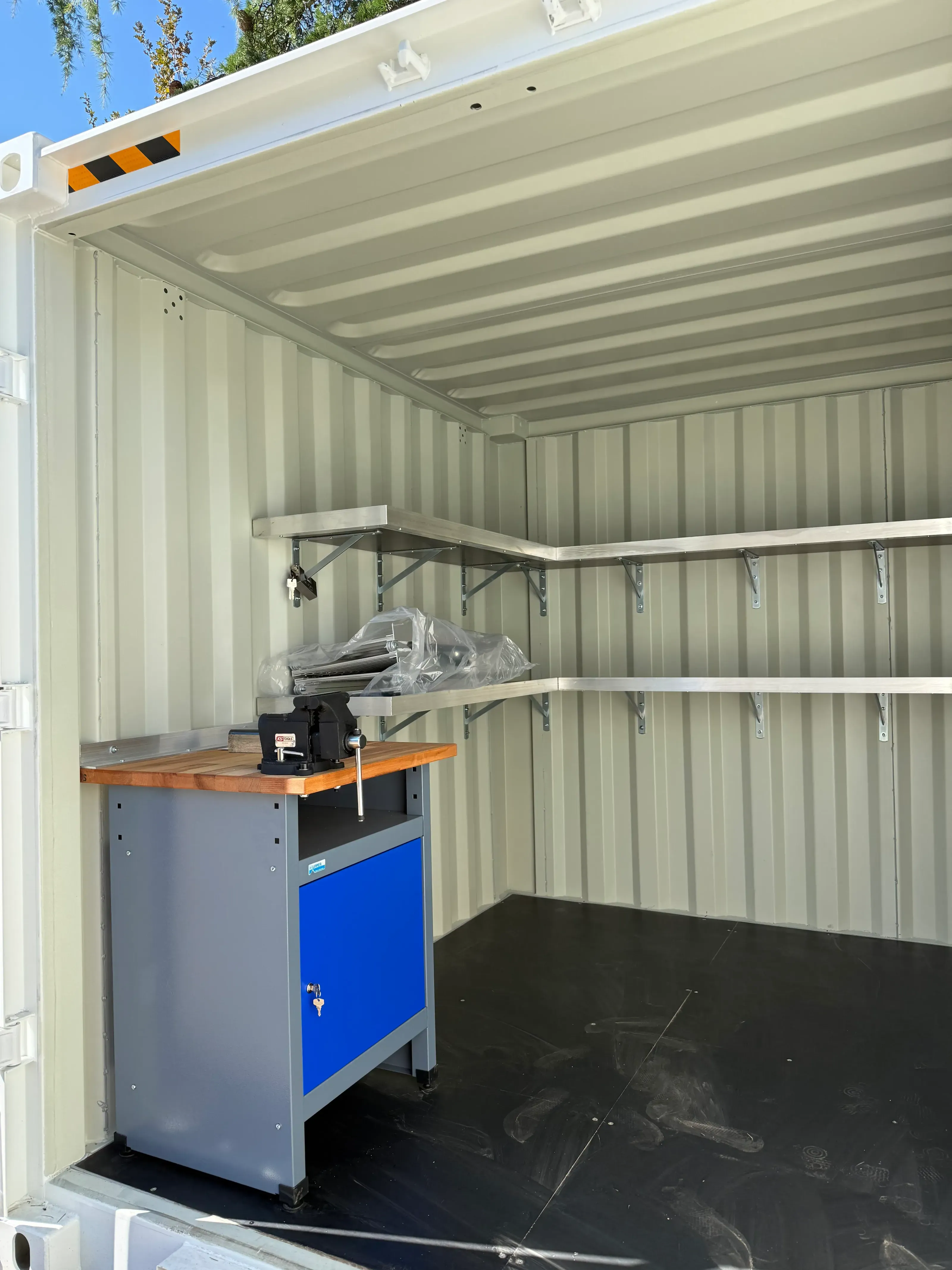 Chaque atelier peut être équipé de systèmes électriques, d’éclairage LED, de ventilation et de chauffage pour garantir un espace de travail confortable quelles que soient les conditions météo.