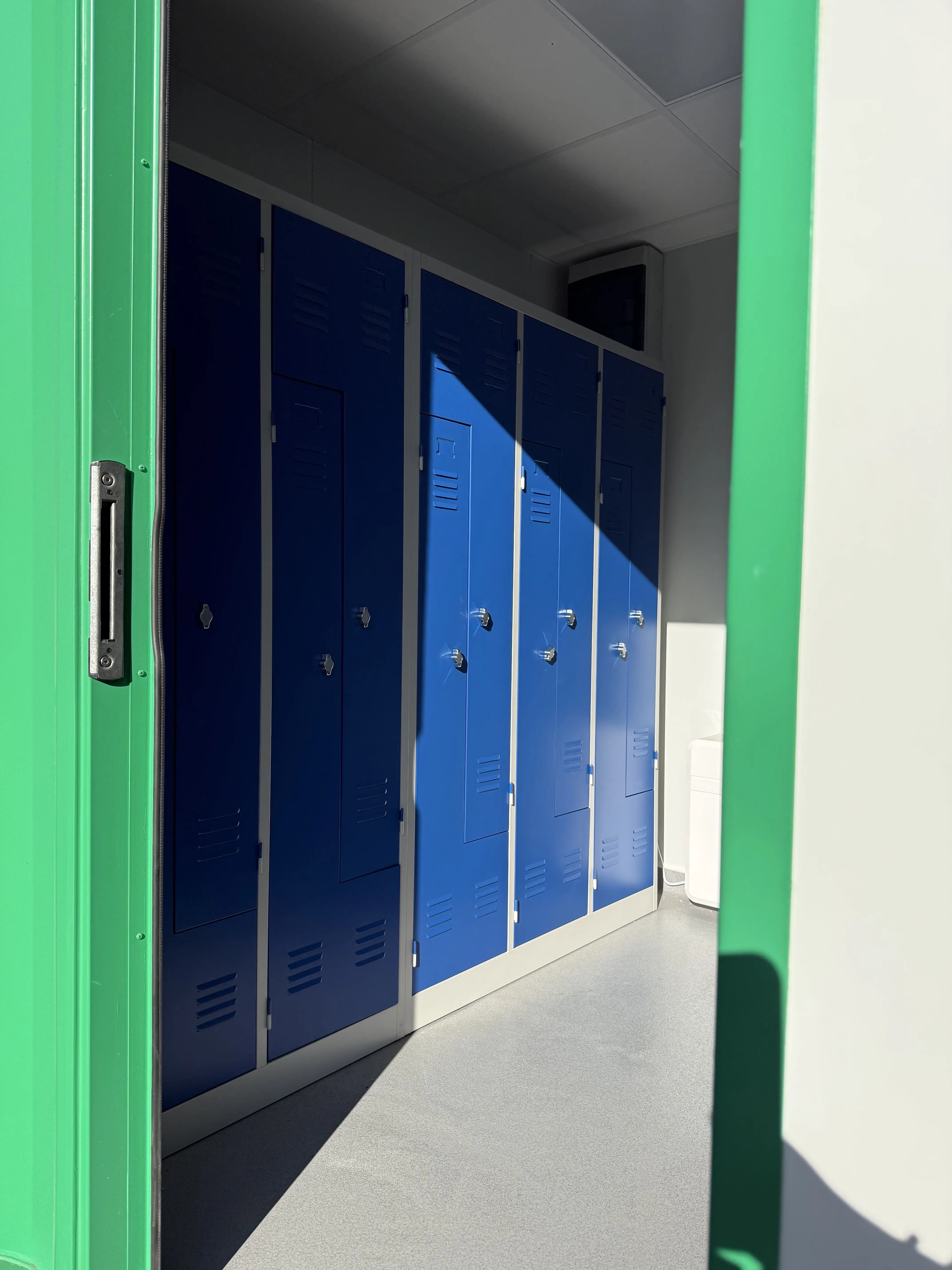 Le container peut être personnalisé avec des extensions pour des vestiaires supplémentaires, des espaces de rangement, des terrasses couvertes ou des zones de convivialité. L’habillage extérieur peut être adapté aux couleurs de votre club, renforçant l’identité visuelle et le sentiment d’appartenance des membres.