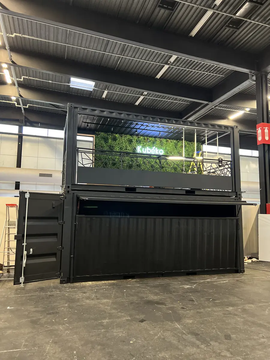 Container 20' : Nous avons transformé un container 20' (6.05x2.44x2.59m) en un bar innovant pour une expérience unique en plein air, combinant un espace intérieur confortable avec une terrasse spacieuse.