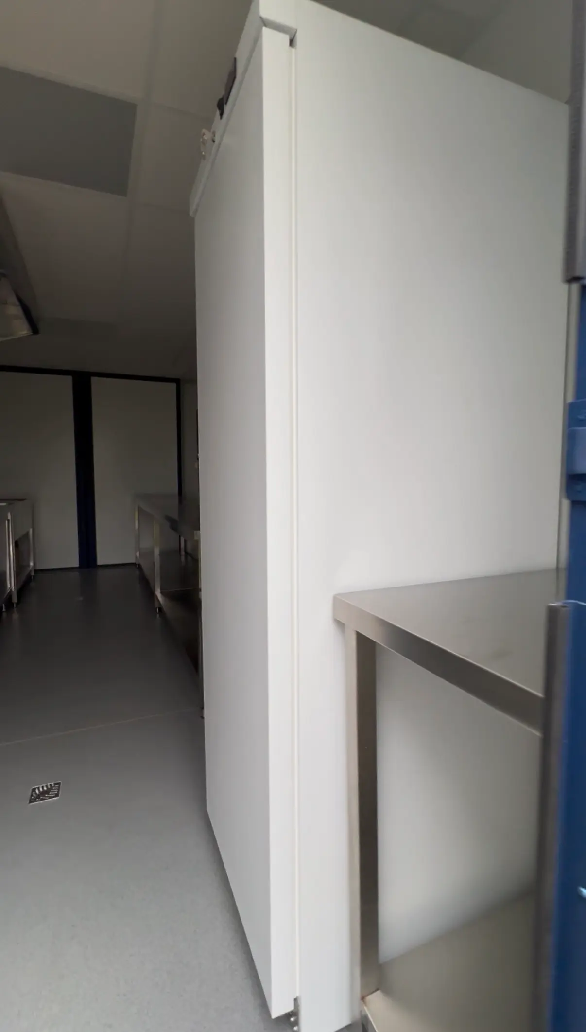 -Aménagement intérieur (hotte murale, armoire réfrigérée, plan de travail en inox…)