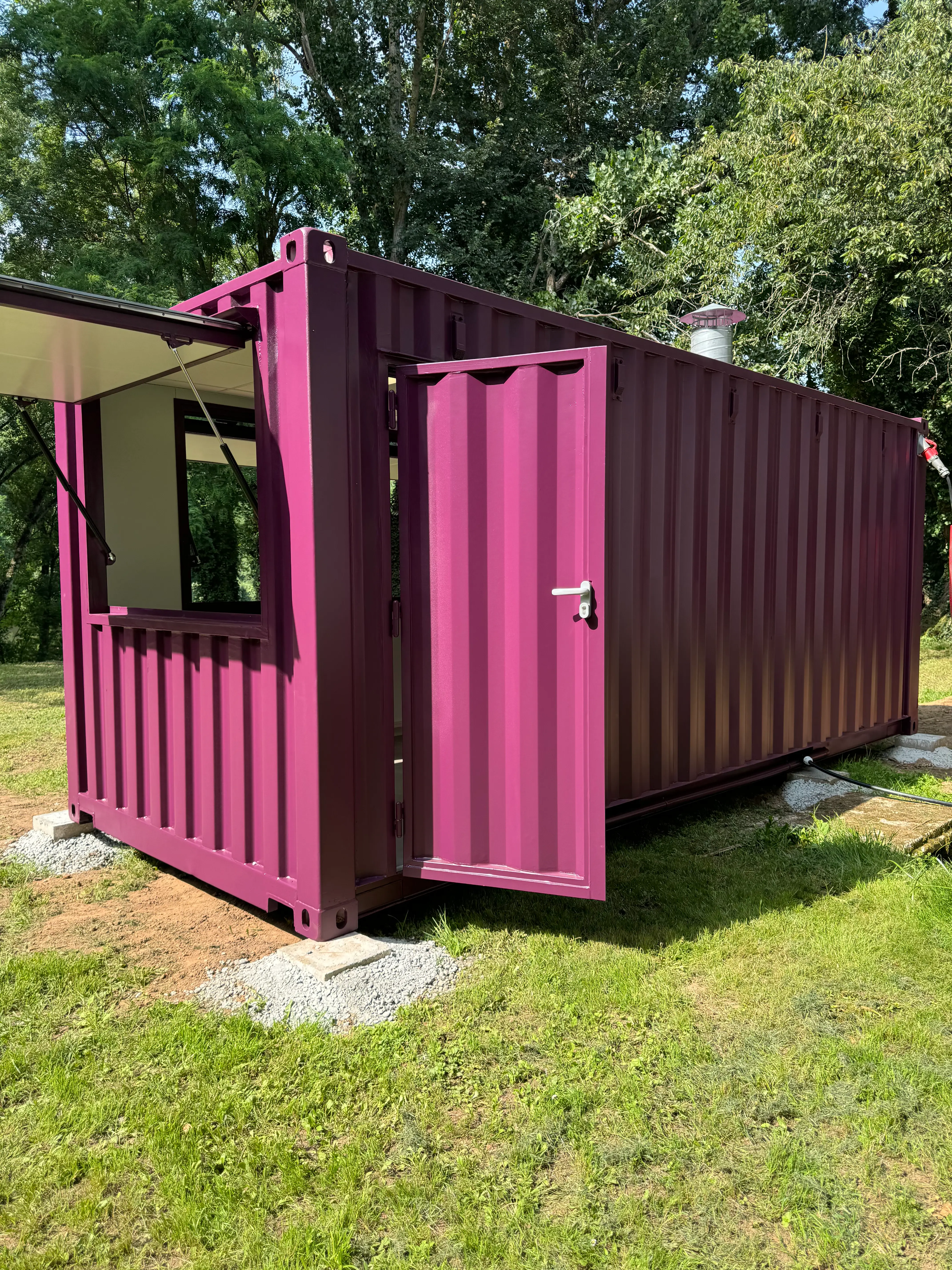Nous avons conçu un snack en container à partir d’un container maritime de 20 pieds, pensé pour proposer un point de restauration simple, fonctionnel et accueillant au sein de la ferme et du musée du pruneau. Ce projet sur-mesure permet d’offrir aux visiteurs un espace de pause et de restauration cohérent avec l’identité du site.