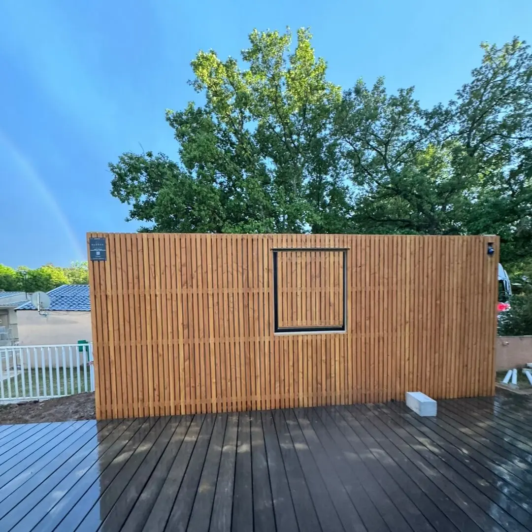 Bardage bois : Réalisation d'un bardage bois en clair-voie en bois de Douglas.