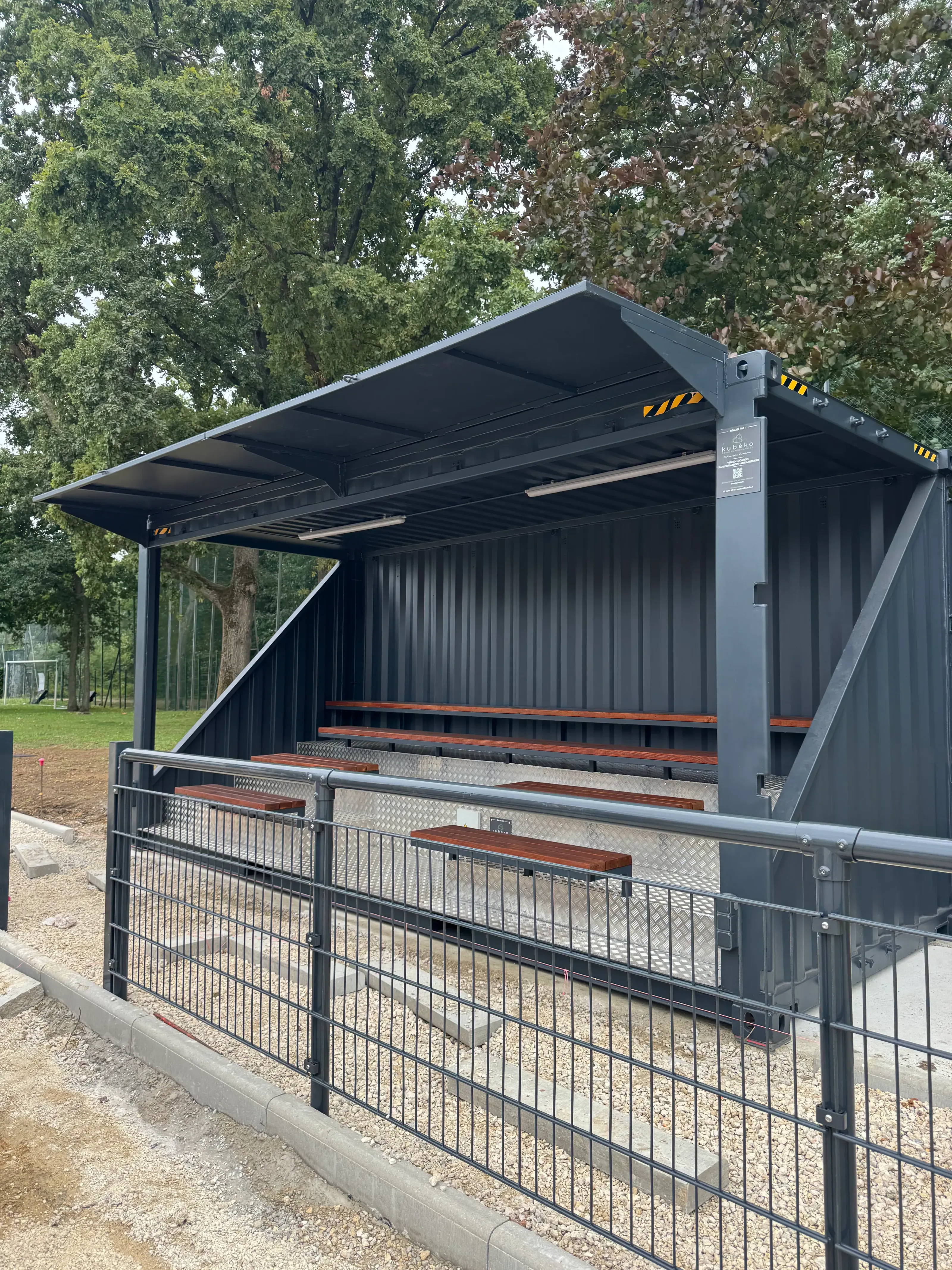 Nous avons transformé un container de 20' (6,06 x 2,44 x 2,90 m) standard en une tribune fonctionnelle pour accueillir le public lors d’événements sportifs. Sa structure robuste et sécurisée garantit la protection des spectateurs et la durabilité de l’installation.