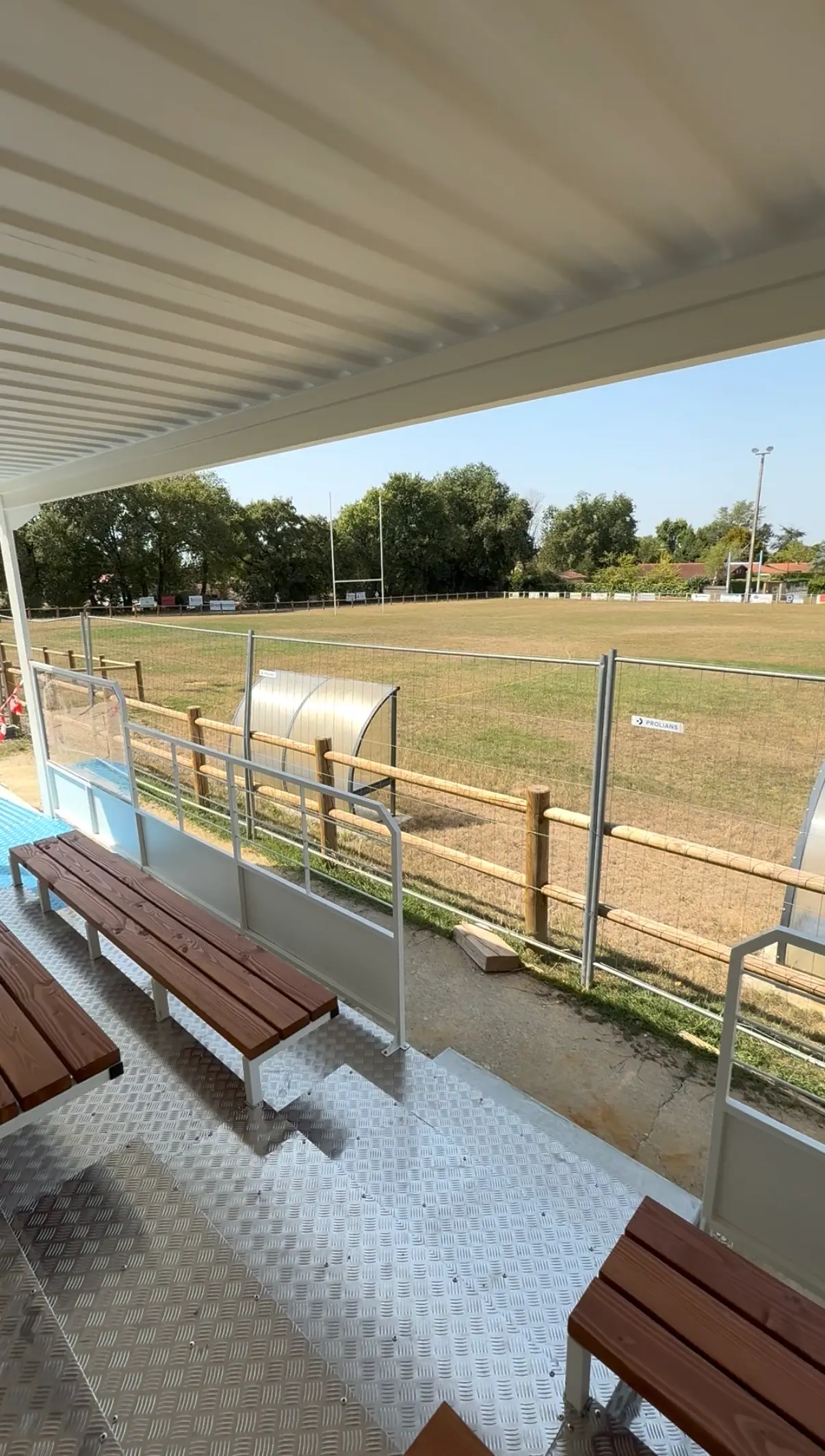 Voici un aperçu détaillé de notre aménagement de tribune container pour le stade de rugby de Gondrin.